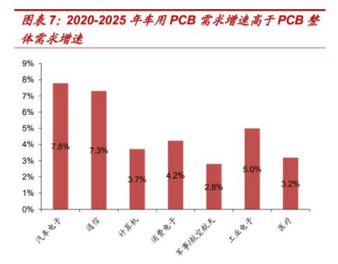 全球車(chē)用PCB需求增速高于PCB整體需求。