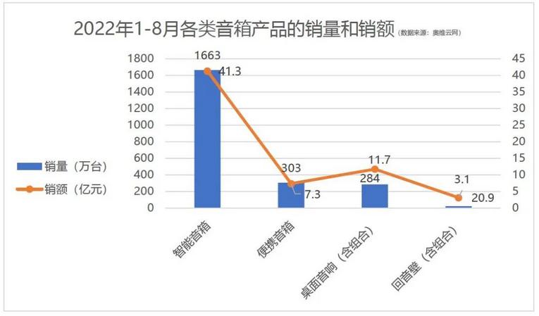 家用音響,1-8月便攜音箱銷量達303萬臺,同比降37.6%;桌面音響銷量284萬臺,同比降5.4%。